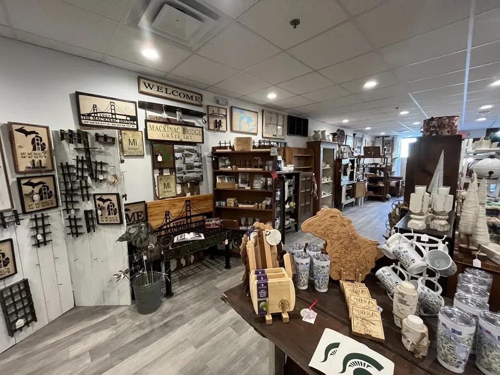 A Gathered Collection is an interior decor store and antique boutique with upcycled housewares and accent pieces. This shop has a rotating inventory of gorgeous homemaking items and decor, from wood tables, shelves, and seating options to framed collectibles from the Mackinac Bridge. This curious inventory will spark your next decor design. Many of the items at A Gathered Collection are antiques and vintage items that have been repurposed into something new, like a toboggan sled shelf and a table made from an old sewing machine base. Many visitors love the seasonal and customized cornhole sets. The storefront is located on the west end of Main Street in downtown Brighton, surrounded by great restaurants and the Mill Pond.