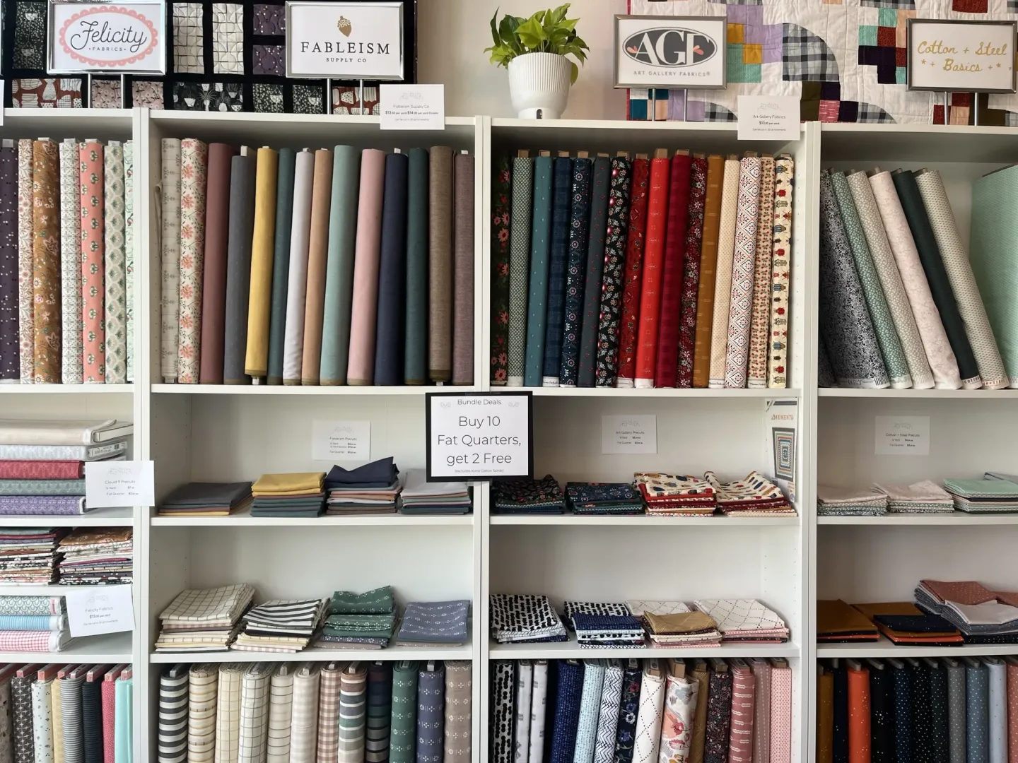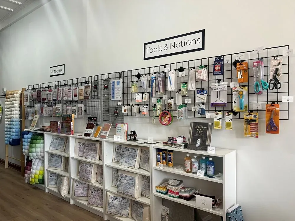 Calling all crafters to the Alyssum Patch Contemporary Quilt Shop in downtown Howell. This store is quaintly decorated to help you build your next quilt. Check out the Tools and Notions to get you started, such as fabric cutters, pins, or fabric measuring tapes. Other sections in the store include the fabric wall, a pattern section, a display of sewing machines you can purchase, and a back section of other crafting artwork. You can even buy small patch squares in curated bundles to fit the project you're already working on. The Alyssum Patch Contemporary Quilt Shop can truly take you from concept to cuddle on your next quilting creation.