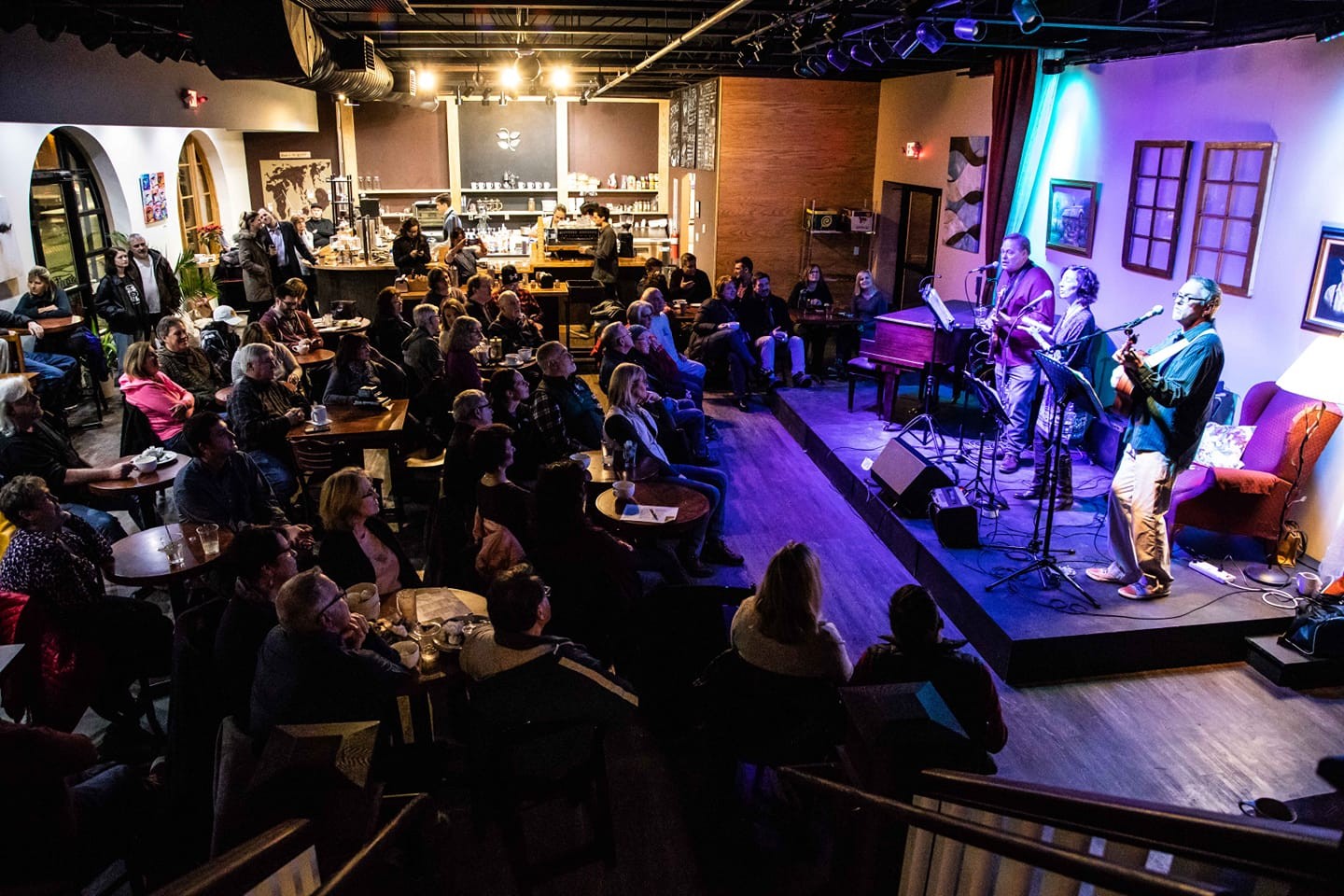 The Brighton Coffeehouse & Theater has plenty of seating to enjoy coffee with friends or bust out your laptop to get some work done. Comfortable cafe tables and chairs, armchairs, loveseats, and window-side seating are available throughout the two levels of the shop. Plus, the patio on the back of the cafe faces the Mill Pond and Imagination Station, so your coffee comes with a view. The Black Box Theater can accommodate about 70 people for theatrical shows and public meetings. This space makes everything possible: classic musicals, book readings, book signings, art shows, community meetings, and more.Hours