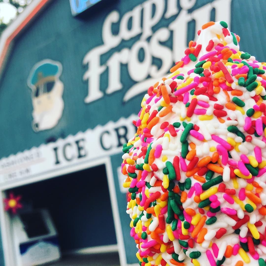 Cap'n Frosty Ice Cream is a staple of the Pinckney community and is a popular stop for sweet treats to cool off during the summer heat. This ice cream shop has many options to ensure everyone gets a treat that will leave them smiling. Ice cream treats include soft and hard serve in cones/cups, sundaes, shakes, avalanches, floats, slushies, and frozen bananas. A Cap'n Frosty Avalanche is a classic soft-serve ice cream treat blended with your choice of candy or topping. For a bit of Pinckney flare, try the M-36 pothole sundae. We hope you don't hit any on the way out! The iconic blue barn is recognized all around the area. Enjoy dessert at the blue picnic tables under the umbrella, or walk on the trail without crossing the main road. This ice cream barn is the perfect place to stop after hiking the Mike Levine Lakelands Trail, playing at Pinckney Recreation Area, or after a long day on the boat on the Chain of Lakes.