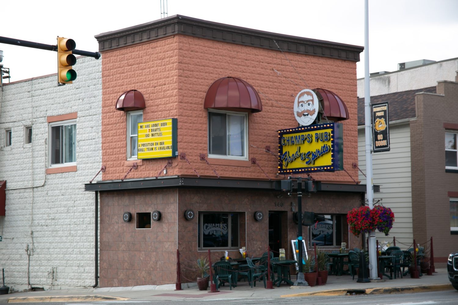 Champ's Pub has one of the most diverse burger selections within the Brighton Howell Area. Voted #1 Burger by the local community, the menu here offers specialty burgers with a variety of beef options. Pick your protein from a wide list of choices like turkey, buffalo, elk, black bean, and the custom blended ground round burger. Pair your must-taste burger with classic pub favorites like Pretzel Bites and Santa Fe egg rolls! If you're not in the mood for a burger, the menu at Champ's features a variety of other handheld options like hot dogs, Crispy Chicken Sandwiches, or a classic Rueben. When you're traveling through Downtown Brighton, Champ's Pub is a great spot for a tasty cocktail. Choose from a plethora of local and American-made craft beers with 16 of them on a rotating tap. Wine and spirit lovers will also be able to choose from a list of drinks perfect to round out your day. Monday through Thursday from 3:00 pm to 6:00 pm, enjoy Happy Hour, which includes $1.25 off all drinks and $1.50 off select appetizers. Champ's Pub is also a downtown Brighton Social District participating restaurant. This means you can grab your favorite cocktail to go and explore the area!