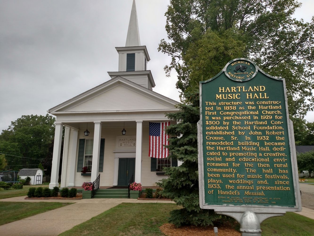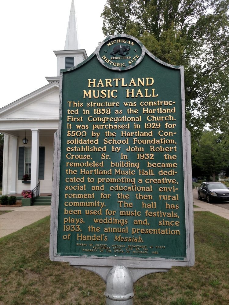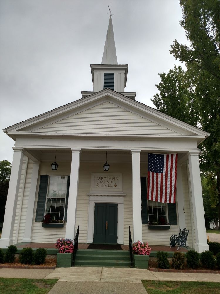 The historic Hartland Music Hall has served as a center for musical performance and education in Hartland since the 1930s. This iconic building and its events enrich the Hartland community and beyond. The Hall's elegant auditorium, including the balcony, seats 224 guests, and rental equipment includes a grand piano, stage, and stage lighting. The historic Kilgen pipe organ is also available, with the caretaker's permission and use by an approved organist.