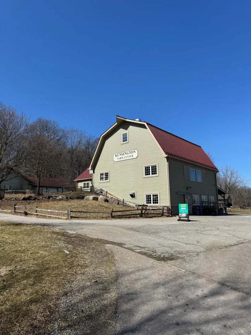 The Kensington Metropark Farm Center allows visitors to explore animals up close. Immerse yourself in the world through the sights, smells, and sounds of life on the farm. Here, you can meet live farm animals like chickens, goats, sheep, and more. On the grounds within the park, you'll visit the 150-year-old restored barn that includes an educational exhibit and children's play area. The river runs through the farm center area. Along its bank, you'll see the one-of-a-kind ""Green Building"" made completely from recycled and other natural materials. This section of the farm center also has a stone labyrinth, a grass maze, and an early skills area with a blacksmith shop and a brick oven. Wander through the herb garden and field crops and test your knowledge of identifying common household foods. On display are old-fashioned farm equipment and tools you'd find on the farm. Education programs on the animals, historical techniques, and other farm-related topics are offered periodically.