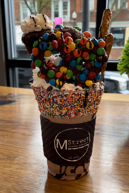M Street Baking Company is a sweet treat experience worth the stop whenever you're in the Brighton Howell Area. Located in the black, seasonally decorated storefront right off Michigan Avenue, the bakery is a shop with a little bit of everything. People drive from near and far to enjoy the signature milkshakes and macaroons. This bakery offers downtown Howell storefront goodies and caters to special events and large parties. Each day, a large array of fresh pastries, muffins, croissants, and macaroons are made fresh and flavorful. Donuts vary from classic favorites to decorated with candies and small treats to bring the M Street Baking Company flair. Plus, you can find treats like rock candy, fudge, and mini cupcakes. The baked goodies come in big party packs that make for memorable catering options at your next gathering. The menu also includes hearty options if you're searching for a lunch or dinner item. The baking company can be a whole experience for breakfast, lunch, and dinner with breakfast pitas, mini pitas, mini pepperoni pizza rolls, and the zelnik. The mini pitas, variety rolls, cheddar garlic biscuits, and other foods are great for any meal of the day. The sweet, savory, and hearty options all create the M Street Baking Company experience. The catering experience at this bakery stretches from sweet treats to savory meals. When spoiling your group with a one-of-a-kind breakfast in the morning, consider adding cartons of freshly brewed coffee to complement the pastries. On their catering menu, hot favorites like pitas and rolls can be ordered in bulk for your next gathering. You can also find gift boxes, baskets, and other merchandise specially curated for your loved ones.