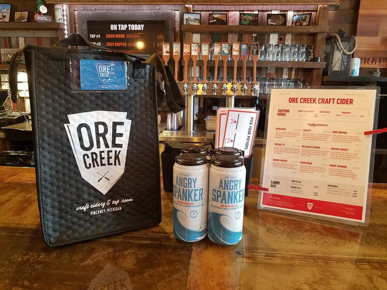 Ore Creek Craft Cidery & Taproom is the home of happy potions for happy people in Pinckney. This taproom is your source for craft cider and crazy creations using its unique brewing process. Visit this slice of paradise on the Portage River all year round: rain, snow, and especially shine. The sleek gray building feels like an up-north cabin with exposed wood and brick, barrel tables, and stools to pull around and chat with friends. The cider is made from luscious, locally sourced Michigan apples in Pinckney, Michigan. The taproom is supplied each day with nine tasty cider taps. Famously, the minds behind the cider will have you start at ""level 1"". First, they give you the story of each cider and help you decide what pour would be best for you. Each time you visit, they'll welcome you back with open arms and a fresh glass, ready to pour. The Chappy is one choice on the taps, infused with Michigan tart cherries and best enjoyed on perfect Michigan waves. There's also the Angry Spanker, jokingly known in their taproom as an altercation involving apples and pickled jalapeno in which the apple won; it's known for its snappy finish. Another favorite is Gilligan's Crush, a crisp cider with an ""unforgettable kiss of ginger, served extra chilled to someone out of your league."" Undoubtedly, they have lots of fun with flavor and flare at Ore Creek Craft Cidery & Taproom. Ask about the three rotating taps for a seasonal pour or unique limited edition beverage. Cider is available by the dedicated ounce, in flights, and by the to-go growler. For a refreshing pour of Pinckney, head down to what's become known as ""the cider shack."" The happy people pouring these potions are ready to welcome you into their home away from home.