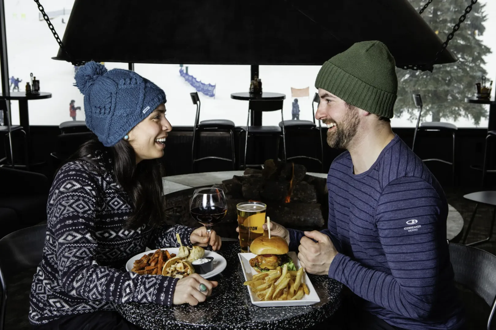 The Ore Creek Mountain Grill is your one-stop shop in Brighton for legendary slope-side service. The beloved Mt. Brighton Ski Resort is where you can enjoy outdoor fun throughout the winter months. Whether you spend a day exploring every trail on your skis or snowboard or are simply in the mood for a bite with a view, the grill will take care of you. The Ore Creek Mountain Grill is a full-service restaurant with various lunch and dinner plates available. The bar is known for its comforting coffee and the scrumptious beverage creations of its team. The grill has catering options for larger groups if they want to rent the space. The view and unique experience of Ore Creek could make it just the right place to host a reception or outing for your group. Alongside their exceptional service and menu items, you'll find the dining experience here unlike any other in the area. The grill feels sleek and new, morphed with the comfort and warmth you need after a long day in the snow. There are arguably two main attractions at this grill, the first one being the massive floor-to-ceiling windows that allow for seamless viewing of the tricks, bunny, and beginner-level ski hills. Even if you aren't a winter sports participant, you can live vicariously and enjoy the view while sipping hot cocoa. The second jewel of Ore Creek is the breathtaking fireplace. As the centerpiece on the far side of the grill, it's a space where you can relax on the comfy couches, warm your hands on the stone, and share your stories of the day.
