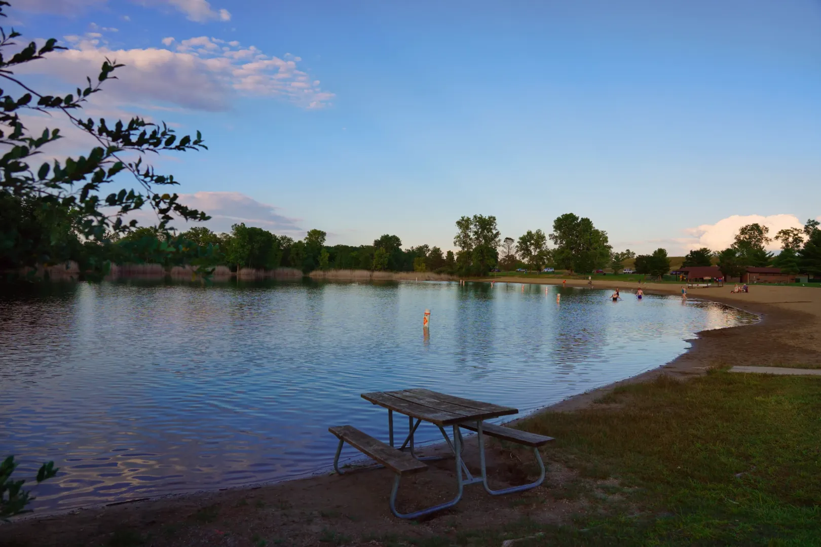 Spring Mill Pond is located inside of Island Lake Recreation Area in Brighton, Michigan. After checking in at the booth, take a right and continue about 2 miles, where you will come across the Spring Mill Pond parking lot and see the beautiful pond. The Spring Mill Pond is spring-fed to keep its beauty, so it stays cool and clear all year. With the pond's small size, it makes it easy for parents to watch their kids while relaxing. For strong swimmers, you can swim across the whole pond. Public grills, picnic tables, vending machines, and bathrooms are a few amenities Spring Mill Pond has to offer. Bring a volleyball with you to use at the sand volleyball courts located close to the lake. If fishing is more your thing, see if you can catch a brown or rainbow trout that the pond is stocked with. There are also neighboring trails that you can use to explore more of the Island Lake Recreation Area.