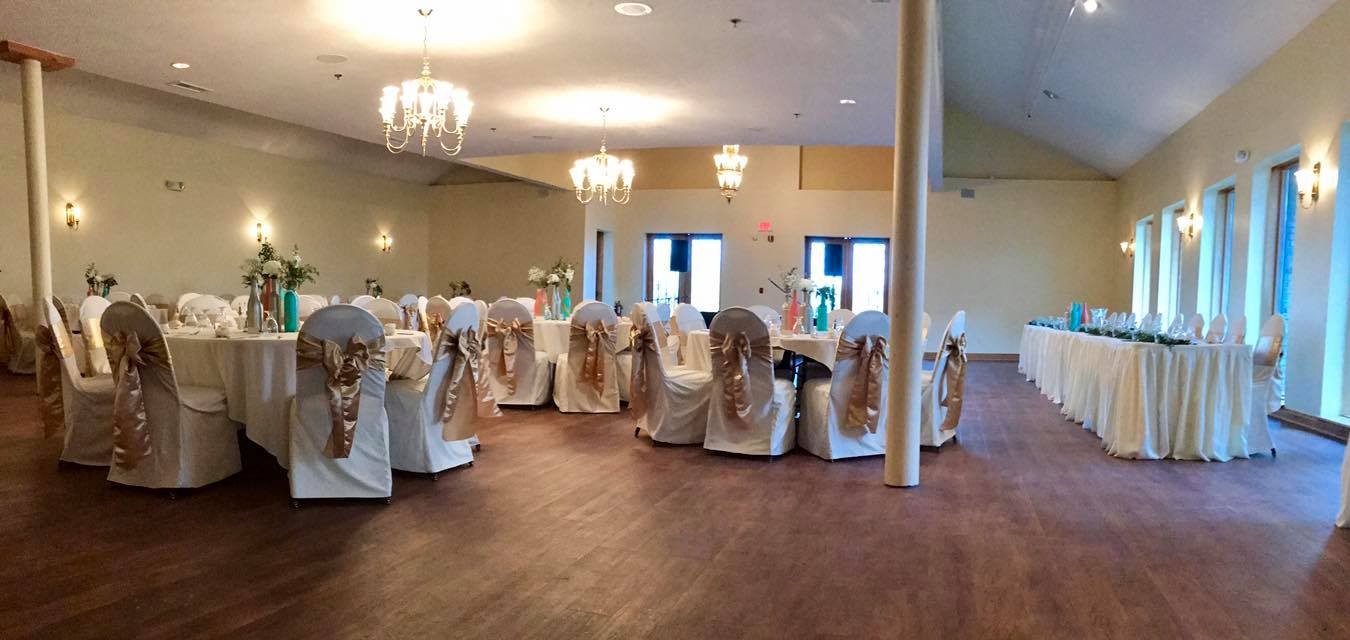 Whispering Pines Golf Club is the perfect location for any golf game in the Pinckney area. Enjoy 18 well-designed holes tucked in a wooded area on a rolling scenic course. Before the course, warm up on the practice greens and chipping area. Each hole starts with four tees to accommodate golfers of any skill level. The clubhouse features an entertainment area, banquet center, bar and grill, and pro shop. Stop in to stock up on missing items, refresh your drinks, or have a snack before rolling onto the course. Whispering Pines Golf Club is a full-service event, banquet, and wedding venue. You can host your event at the large clubhouse with an indoor and outdoor space overlooking the course. Multiple location options exist to host your event with up to 225 guests.