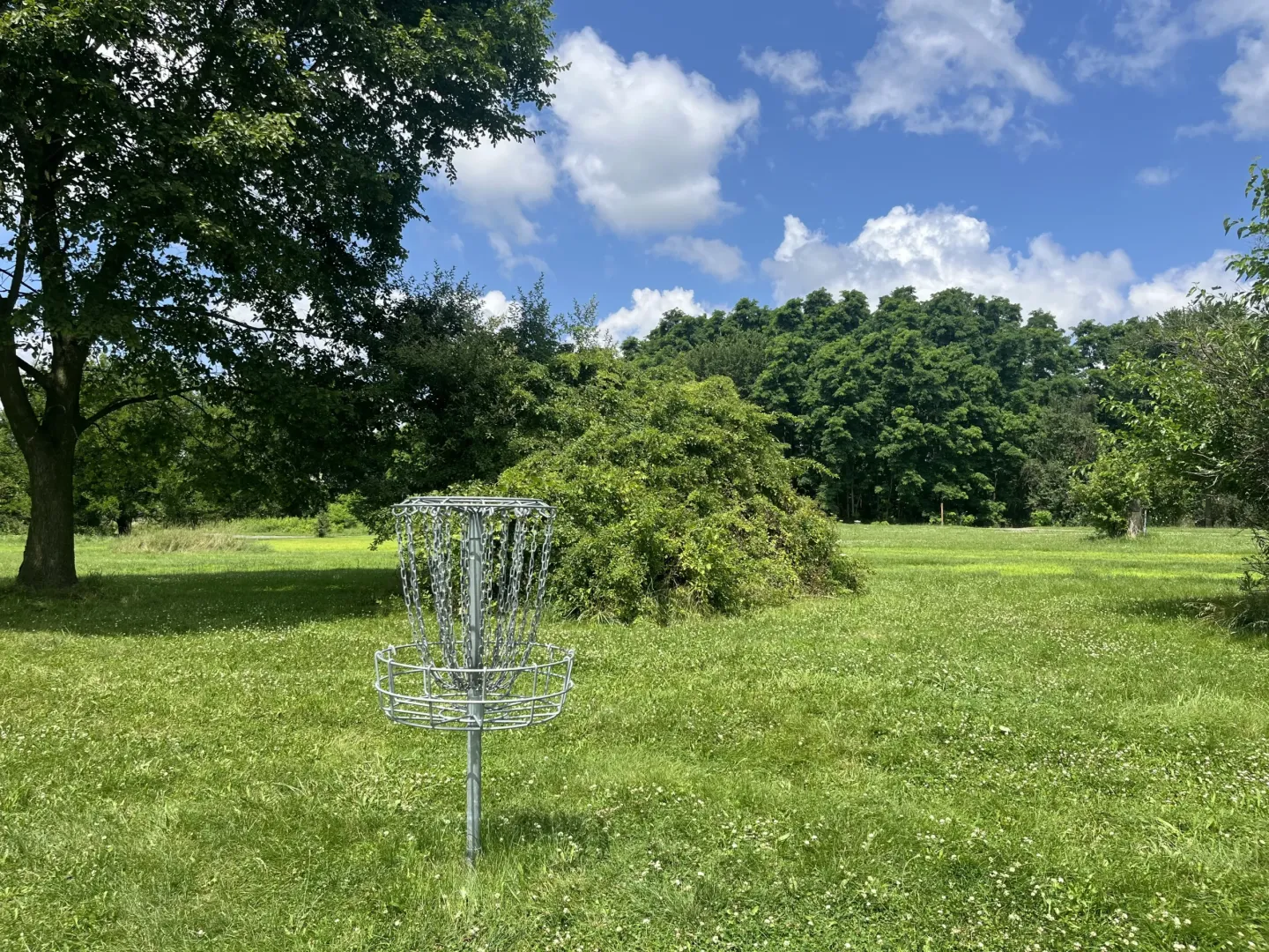 Whitmore Lake Community Park Disc Golf is a great course on the south side of the Brighton Howell Area. As the name suggests, this course is located right across the street from Whitmore Lake. The grounds are within the community park, home to play structures, rocky paths, and bathroom facilities. The delightful 9-hole course provides a mix of open and wooded shots. Golfers can choose between two tees on every hole. Each tee is a dirt path with a colored marker on the ground; the left side indicates which hole, and the right shows the course layout and feet until the basket. Playing the long tees, it's 2,367 feet, and on the short tees, 1,728 feet. This course is about two minutes from most of the businesses in Whitmore Lake. You'll be next to the water and a few great restaurants when you finish disc golfing.