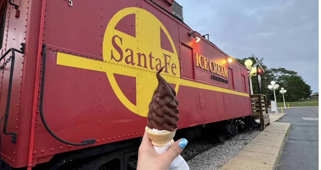 Whistle Stop Ice Cream Caboose serves premium soft serve, frozen yogurt, and over 20 different flavors of delicious scooped Ashby’s ice cream. Order your ice cream on a cone, in a cup, or blend into a sweet milkshake or crossroad with any candy or topping. Looking for a healthy alternative? Whistle Stop serves non-fat frozen yogurt.